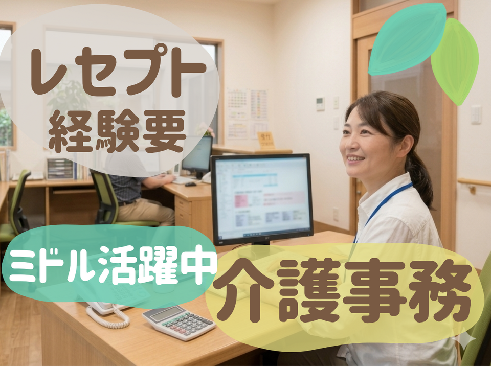 少しでもレセプト経験ある方を募集しています。ブランクがあったり、介護事務がはじめてでも大歓迎です!介護事務については、先輩職員さんがしっかり教えてくれますので安心してスタートできます。