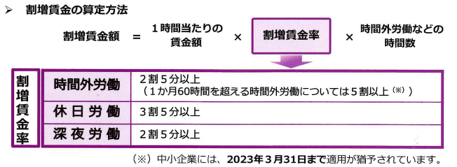 時間外労働、休日労働、深夜労働(午後10時から午前5時)を行わせた場合には、