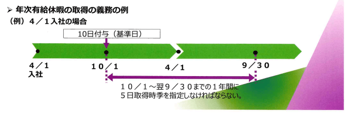 年5日の年休を取得させることが使用者の義務となります (労働基準法第39条)